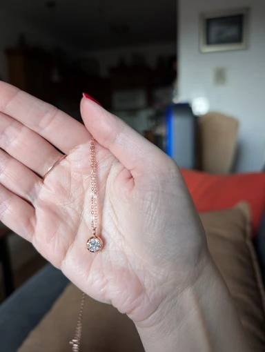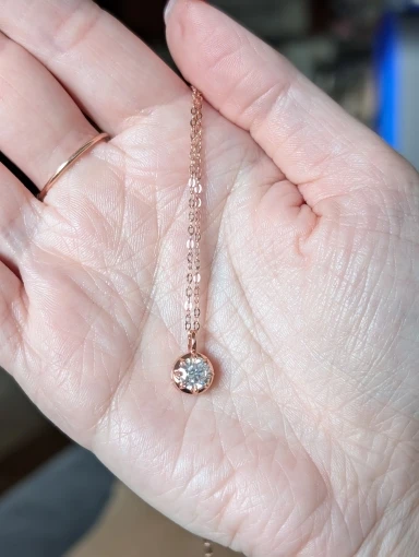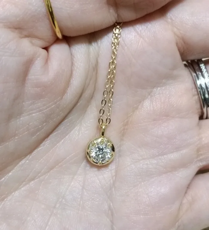 It seems like it could be threaded through a slightly thicker chain, so i'm thinking of replacing it with a stainless steel chain. Moissanite is very beautiful! 😍 Highly recommended ✨ 👍