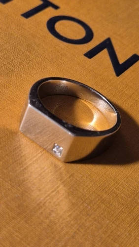Will get this engraved. Nice weight and craftsmanship. Diamond is proportionate to the size of the ring. I didn't receive the cyan moissanite charm gift in the sale. :(