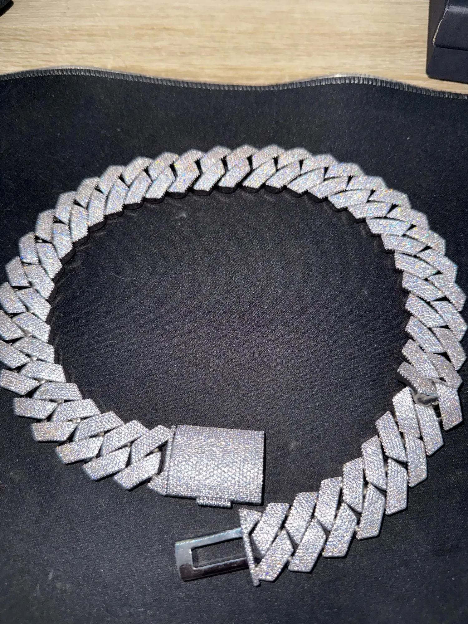 This necklace is heavy, the diamonds are shiny, the logistics is fast, the service attitude is excellent, and it looks super good. This size is the best for wearing around the neck. If you want a shiny, heavy and beautiful chain, believe me, buy it.